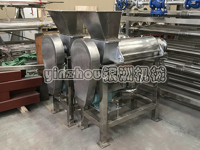 本設備是我公司消化吸收國外先進技術研製而成的專用榨汁設備,適用於百香果、柑橘、檸檬、橙子或類似水果的連續自動榨汁。與物料接觸部分均采用不鏽鋼304製作。經分級取油後的柑橘、檸檬、橙子全果,送入本機後(百香果直接進),通過壓碗式輸送機構,將整果連續自動切成兩瓣,並通過內側刮網取出果肉,並能自動將果皮、果汁、果渣進行分離。